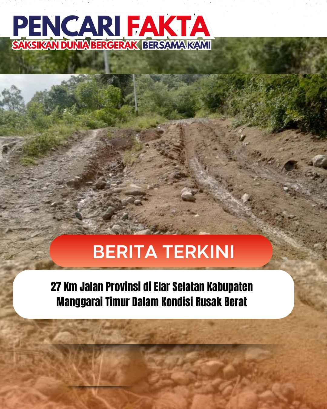 www.pencarifakta.com.ǁNTT,15 September 2025-Sekitar 27 kilometer jalan milik Provinsi Nusa Tenggara Timur (NTT) di wilayah Kecamatan Elar Selatan, Kabupaten Manggarai Timur (Matim), dalam kondisi rusak berat.