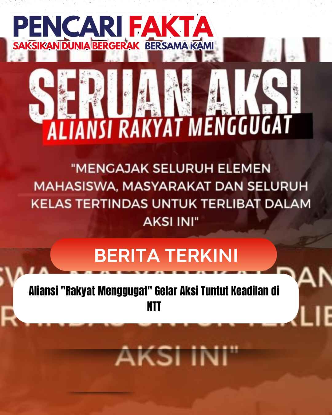 www.pencarifakta.com.ǁNTT,16 September 2025-Sejumlah elemen masyarakat yang tergabung dalam Aliansi Rakyat Menggugat akan menggelar aksi demonstrasi bertajuk “NTT Darurat Keadilan” pada Selasa, 16 September 2025, pukul 08.00 WITA di depan Mapolda NTT.