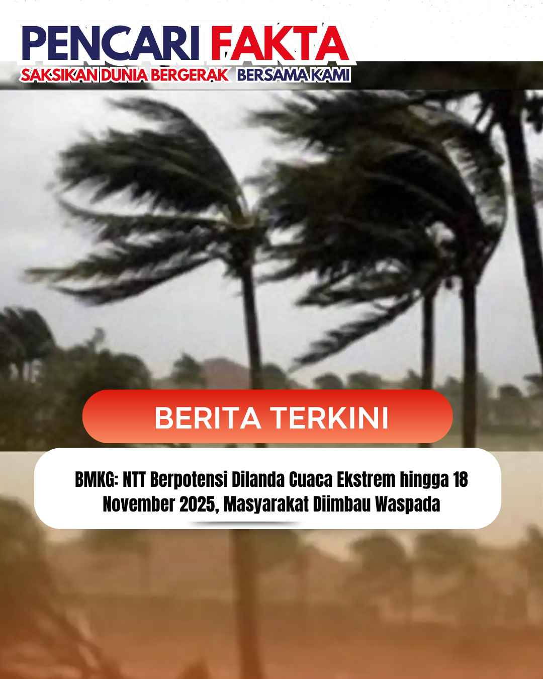 BMKG mengingatkan bahwa NTT berpotensi dilanda cuaca ekstrem hingga 18 November 2025.