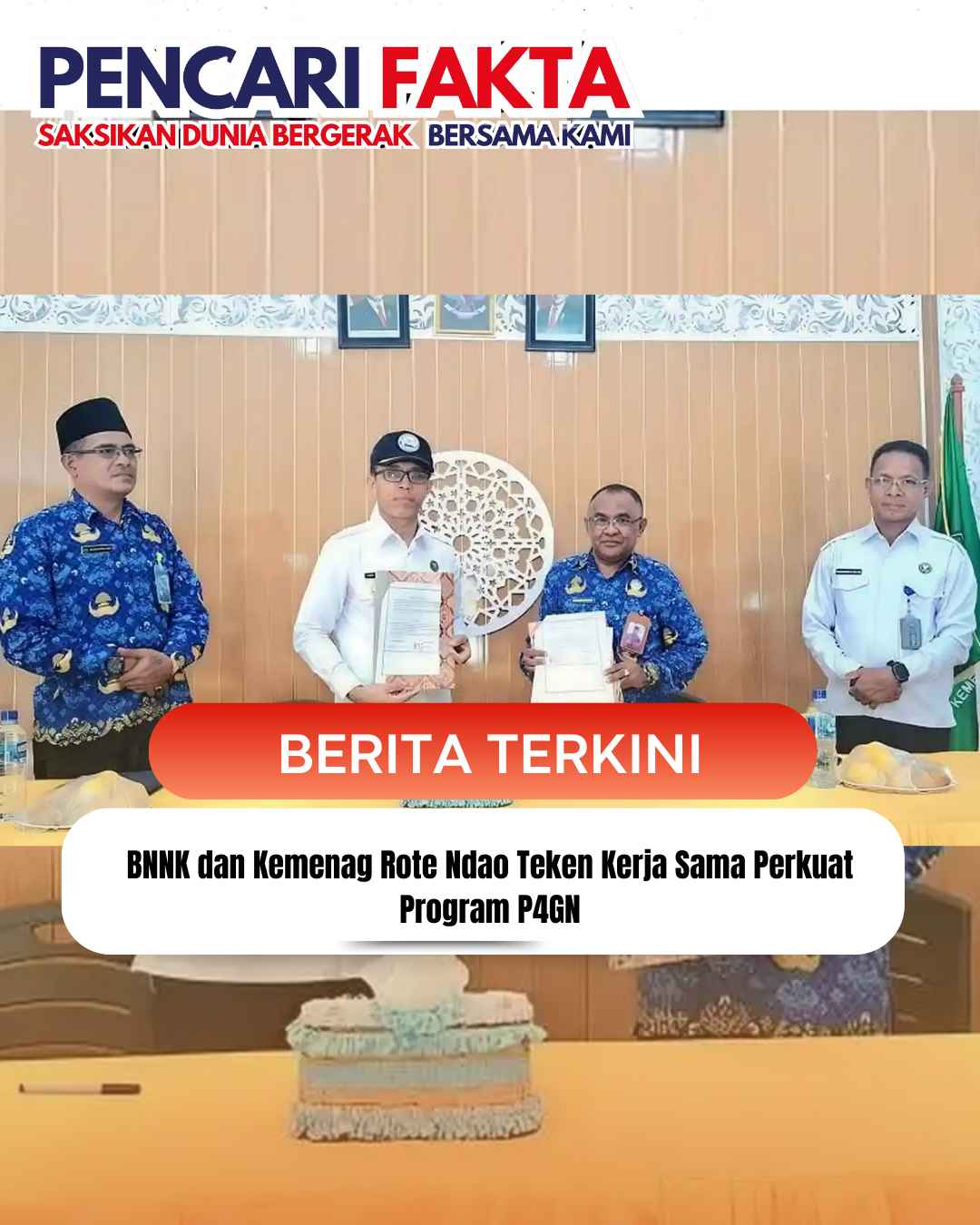 www.pencarifakta.com.ǁNTT,21 November 2025-Badan Narkotika Nasional Kabupaten (BNNK) Rote Ndao dan Kantor Kementerian Agama (Kemenag) Kabupaten Rote Ndao menandatangani Perjanjian Kerja Sama (PKS) dalam upaya Pencegahan Pemberantasan Penyalahgunaan dan Peredaran Gelap Narkotika (P4GN).