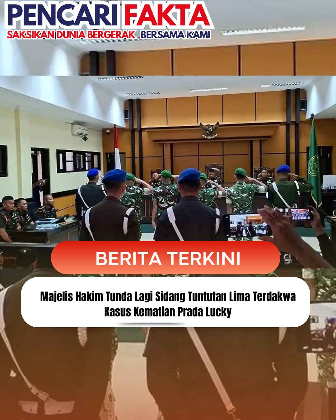 Sebelumnya, pada Rabu, 3 Desember 2025, sidang dengan agenda pembacaan tuntutan dalam berkas perkara nomor 41-K/PM.III-15/AD/X/2025, yang menyangkut kasus penganiayaan hingga meninggalnya Prada Lucky dengan 17 terdakwa, juga telah ditunda oleh majelis hakim ke Rabu 10 Desember 2025 mendatang.