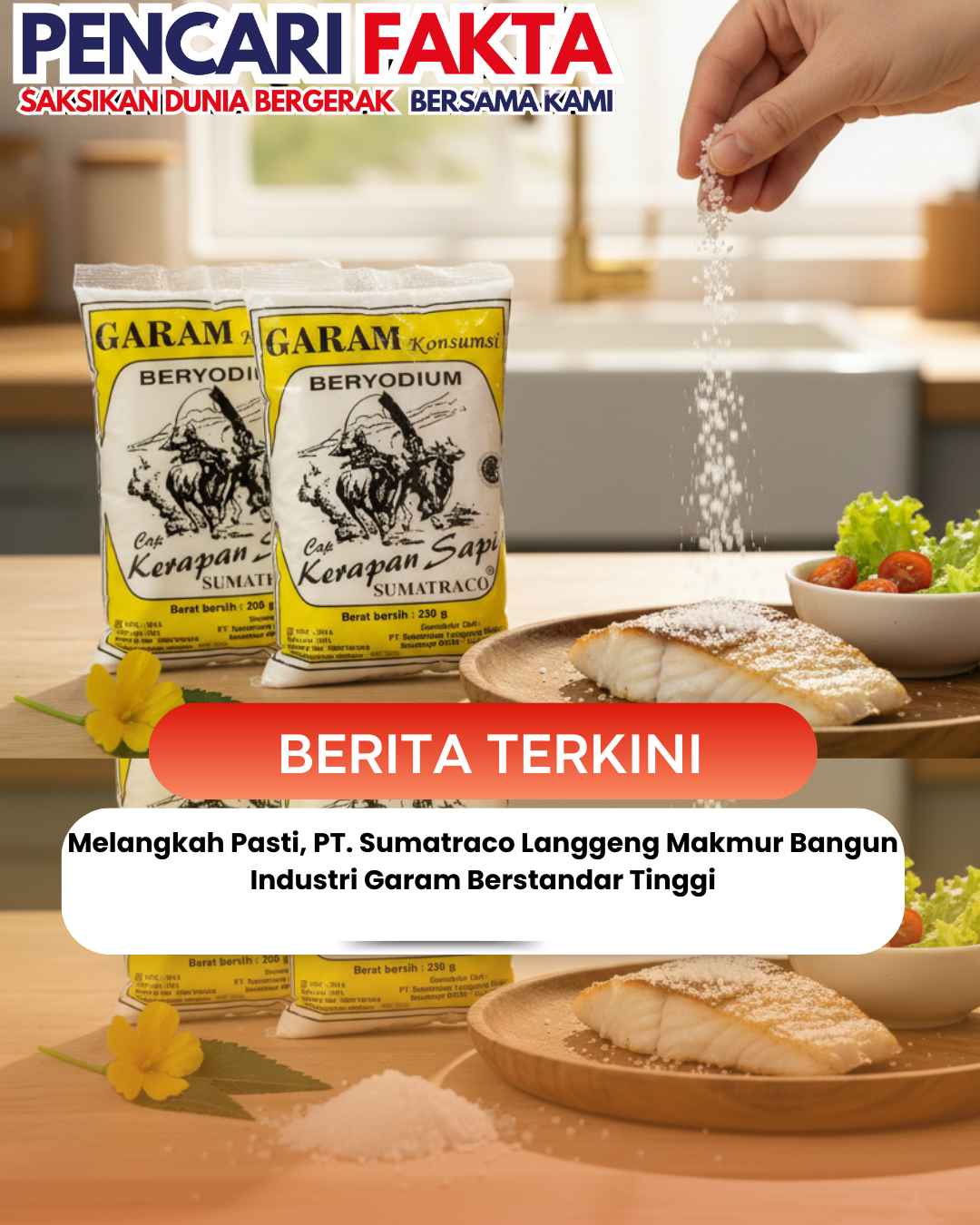 www.pencarifakta.com.ǁSurabaya,25 februari 2026-Industri pengolahan garam nasional kembali menunjukkan geliat pertumbuhan yang menjanjikan. PT. Sumatraco Langgeng Makmur, perusahaan yang bergerak di bidang produksi dan pengolahan garam, resmi memperkuat posisinya sebagai salah satu pelaku industri strategis dengan standar mutu tinggi dan orientasi pasar global. Berbasis di Surabaya, perusahaan ini terus berinovasi dalam meningkatkan kualitas produksi sekaligus memperluas jangkauan distribusi hingga mancanegara.