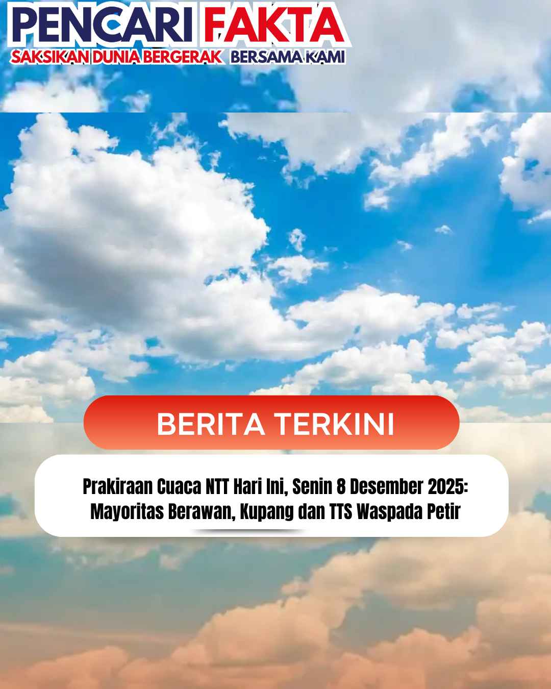 www.pencarifakta.com.ǁNTT,8 Desember 2025-Informasi prakiraa cuaca ini mungkin penting bagi kamu yang sedang merencanakan perjalanan atau berakttivitas di luar rumah hari ini.