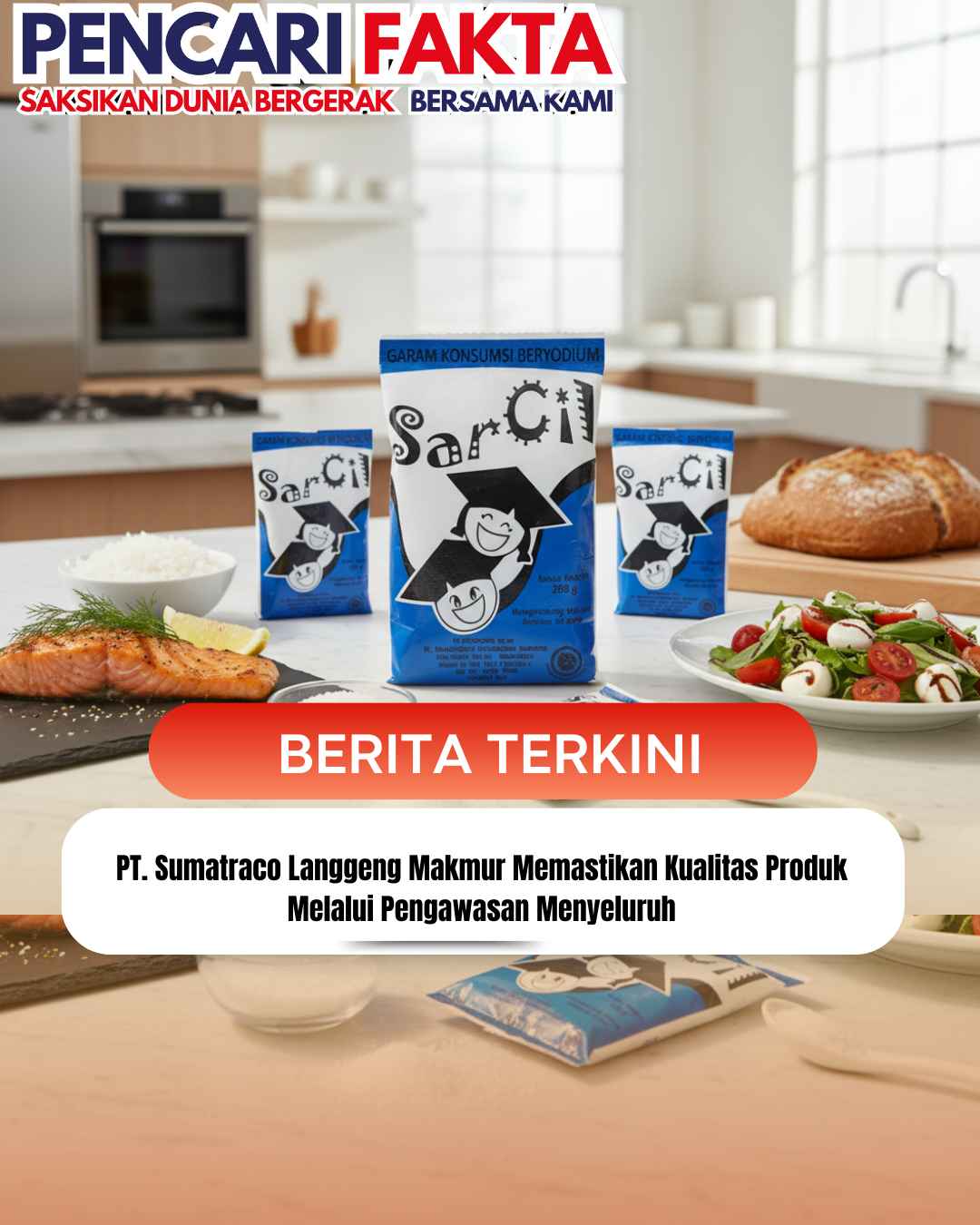 www.pencarifakta.com.ǁSurabaya,23 Januari 2026-PT. Sumatraco Langgeng Makmur, perusahaan yang bergerak di bidang produksi dan pengolahan garam, terus memperkuat komitmennya dalam menjaga kualitas produk melalui penerapan sistem pengawasan menyeluruh di seluruh lini produksi. Berbasis operasional di Surabaya, perusahaan ini menempatkan standar mutu sebagai fondasi utama dalam menghadapi persaingan industri pangan nasional maupun internasional.