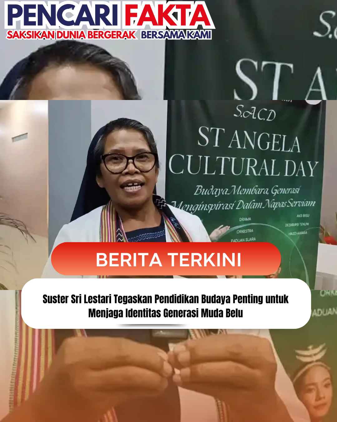 www.pencarifakta.com.ǁNTT,25 Januari 2026-Koordinator Kampus Ursulin Santa Angela Atambua, Suster Caritas Sri Lestari, OSU menegaskan, pentingnya pendidikan budaya sebagai fondasi dalam menjaga identitas generasi muda Belu di tengah arus perubahan dan pengaruh budaya luar.